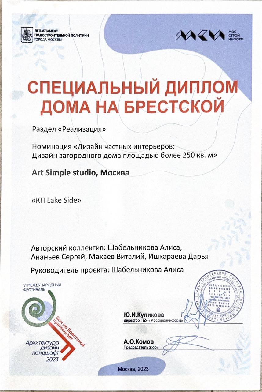 - European Property Awars 2019 в номинации «Лучший жилой интерьер»
