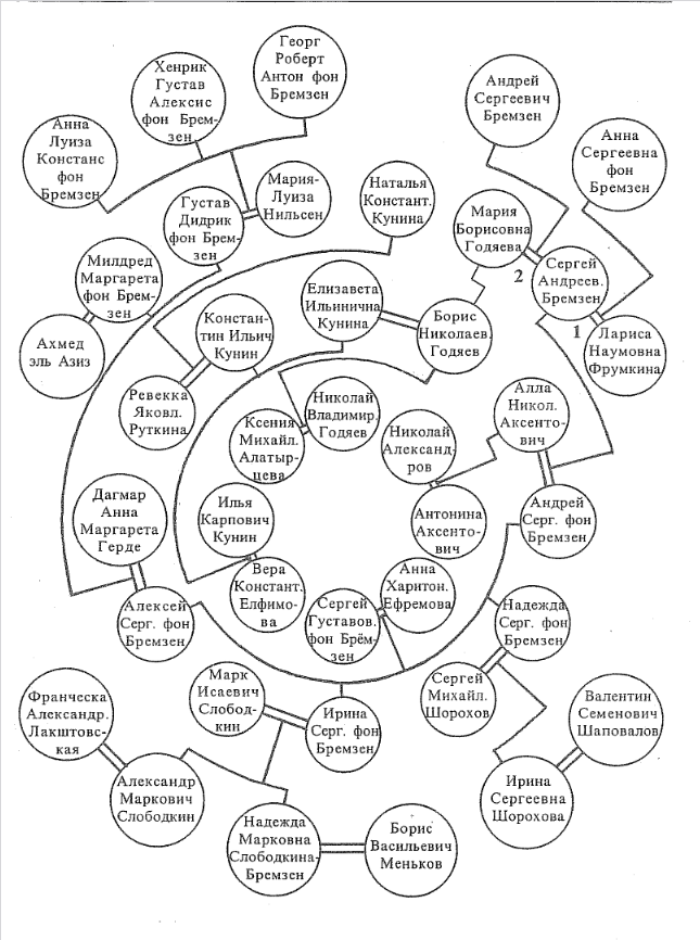 Основные родственники Андрея Бремзена показаны на кольцевой схеме из другой работы Надежды Меньковой.[11]