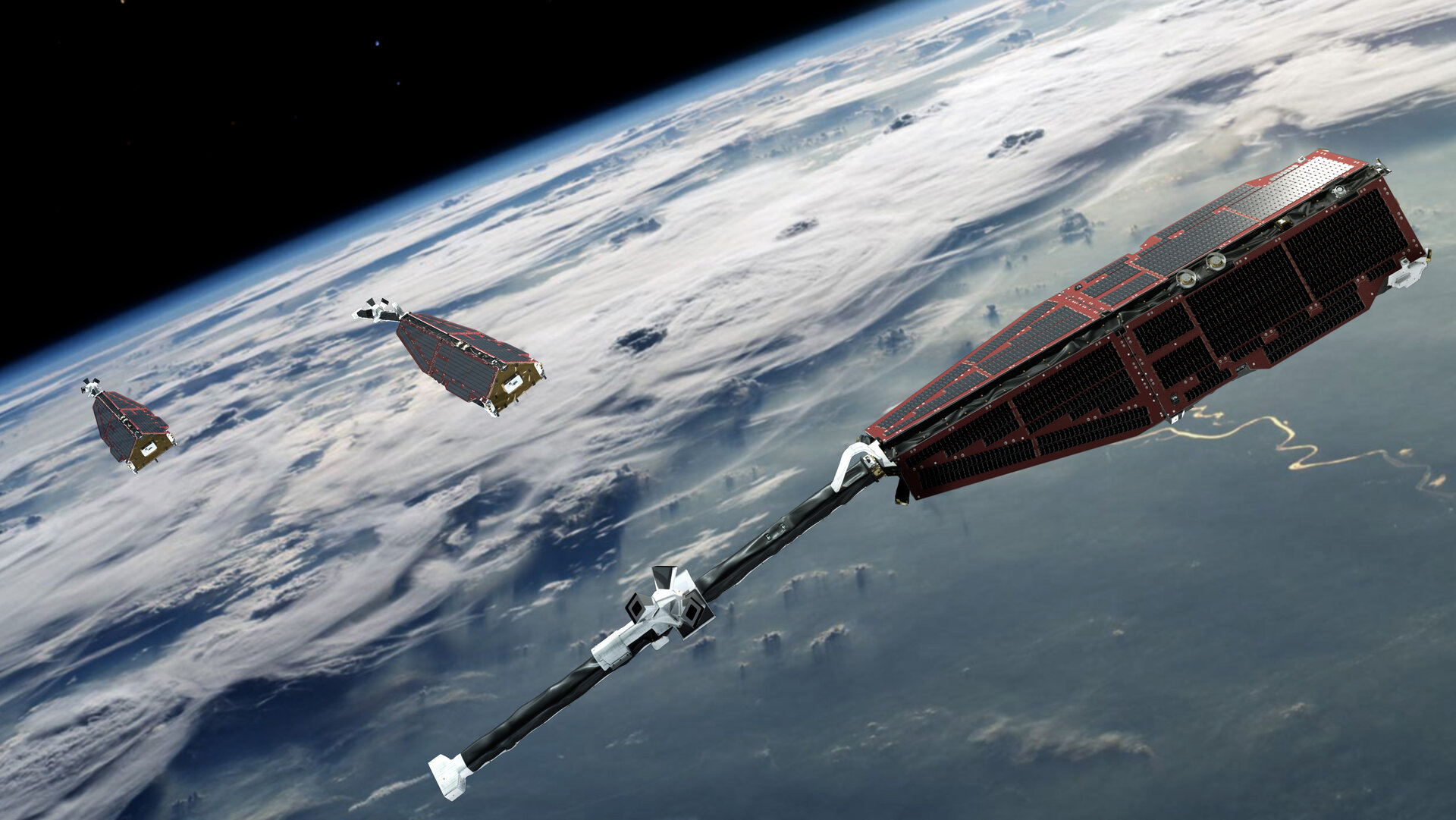 Учитывая, что наземные магнитные обсерватории построены на суше, информация об этих рывках была неполной, поскольку океан, конечно, покрывает 70% поверхности Земли. Но благодаря четырём (в марте 2018 года миссия CASSIOPE/ e-POP была официально включена в созвездие Swarm в качестве четвертого элемента (Swarm-E) в рамках Программы миссии третьей стороны Earthnet ESA.)[26] спутникам Swarm ЕSА, которые измеряют изменения нормального магнитного поля Земли из космоса, ученые теперь могут изучать глобальную структуру геомагнитных рывков.[27]