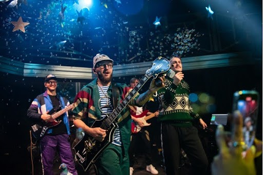 - Сценический имидж: Акцент на стилистике 1980-х и 1990-х — олимпийки, свитеры, винтажные аксессуары. Музыканты артиста одеты в соответствующие яркие образы.