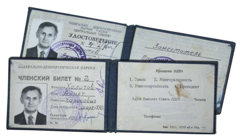 Ахмет Харисович Халитов (р. 1929) — один из основателей ЛДПР, генеральный секретарь ЛДПСС, член Высшего совета ЛДПР и заместитель председателя Либерально-демократической партии с 1990 по 1993 год. Основатель Союза мусульман России. Имеет партбилет ЛДПР под номером 2.
