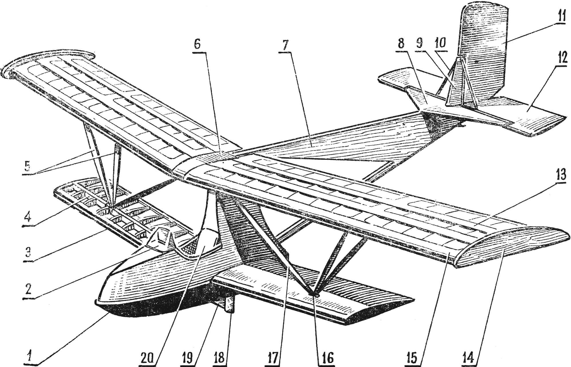 Представляет собой подкосный биплан, основное крыло — верхнее, нижнее значительно меньше по площади и служит в основном для удержания летательного аппарата на плаву во время пребывания на воде.