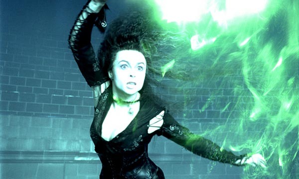 ![]() Беллатриса Лестрейндж, двигающее рядом с ней убивающее заклятие символически показывает всё то зло, которое принесла эта чародейка. | |