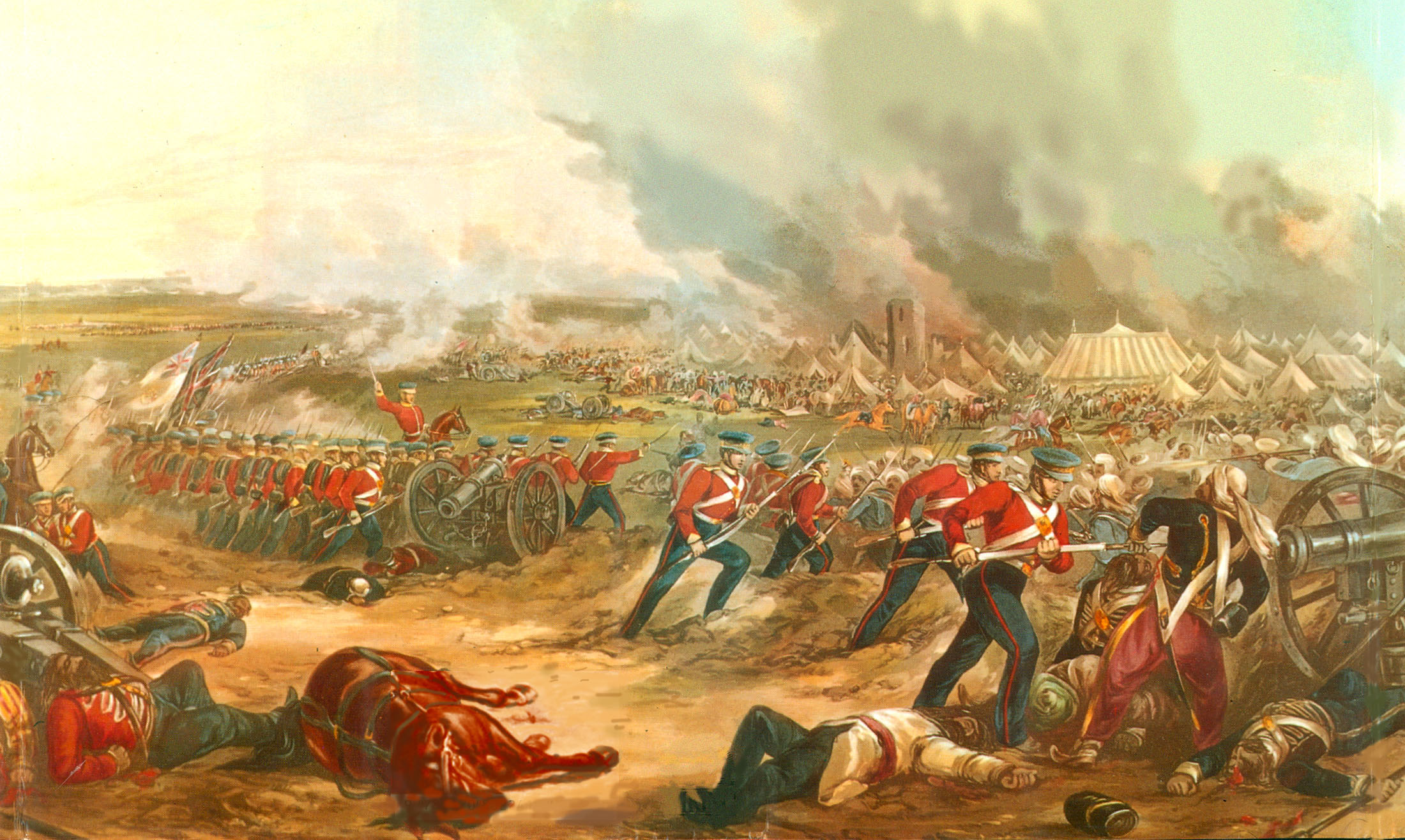 В кровопролитном сражении британцы и сипаи оттеснили сикхов, но с наступлением ночи Гоф приказал отступить. Сикхи вернули себе укреплённый лагерь и обстреляли из орудий англичан, находившихся на открытом месте[4].