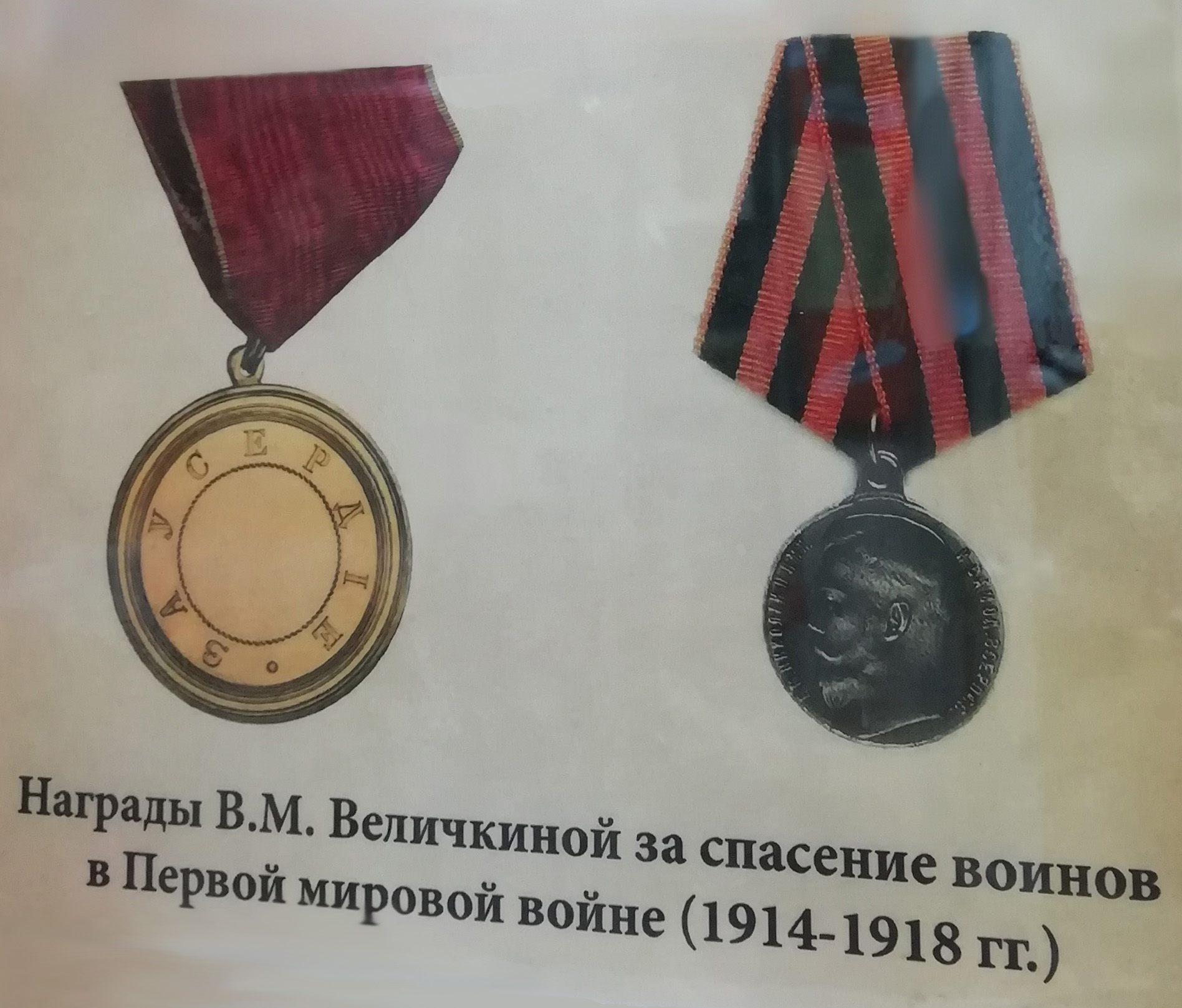 Во время первой мировой войны работала полтора года врачом на фронте. За спасение русских воинов во время войны, Вера Михайловна была удостоена редких для женщин наград: Георгиевской медали четвертой степени и серебряной медали «За усердие» на Владимирской ленте.[2]