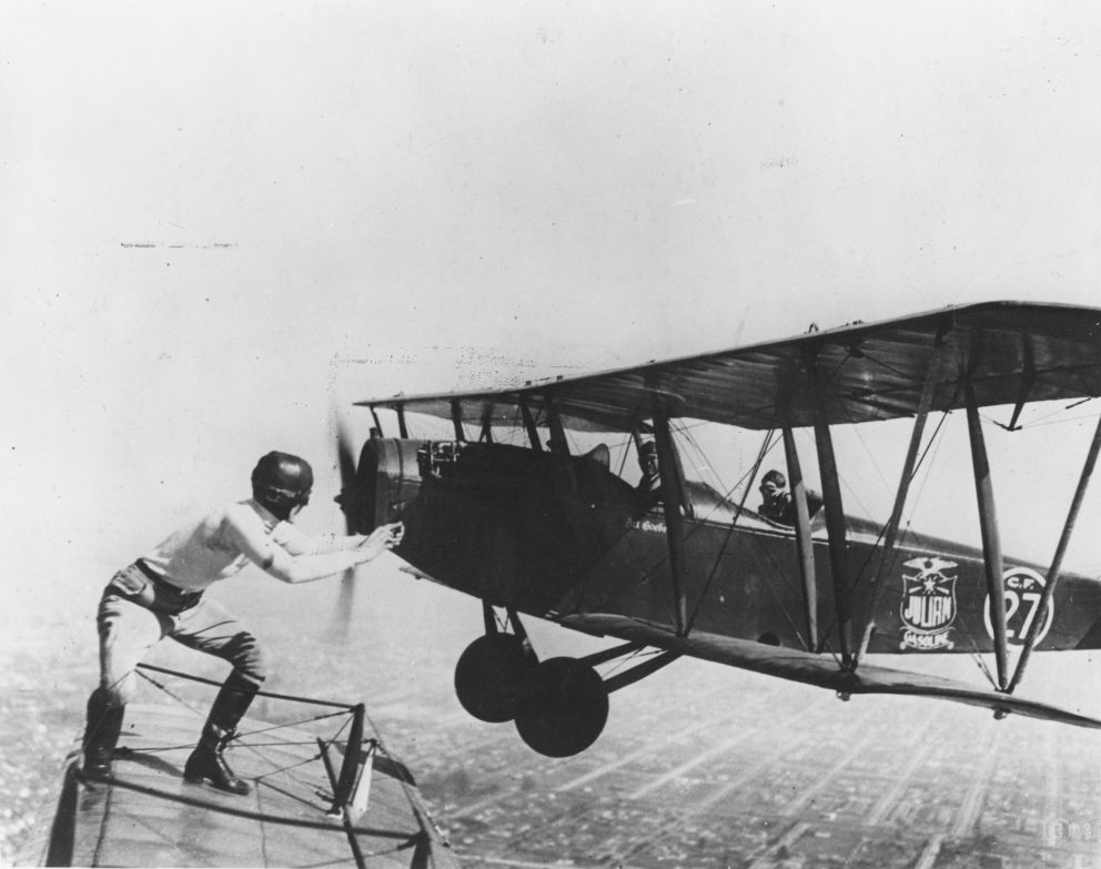Американские летающие цирки-барнстормеры 1920-х годов со временем предлагали всё более зрелищные шоу, которые уже не ограничивались простым хождением по крыльям. В частности, акробаты демонстрировали стойки на руках на крыле или висение на верёвочной лестнице, удерживаясь за неё зубами, пересадку на скорости с автомобиля (моторной лодки, поезда) на самолёт, летящий низко над землёй (или на подвешенную под ним верёвочную лестницу), прыжки с самолёта на самолёт на высоте и т. п.