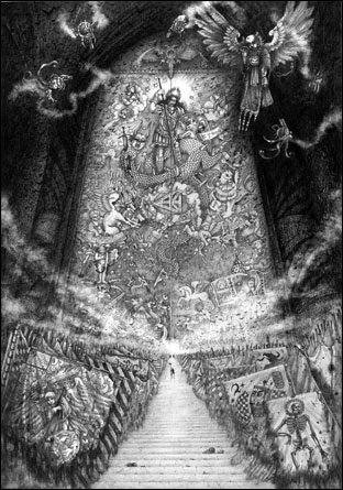 Во время Битвы за Терру, эпизода Ереси Хоруса, Примарх Сангвиний один защищал вход от орд Хаоса, желавших наводнить Дворец, никто кроме него не мог выдержать этого беспощадного нападения.