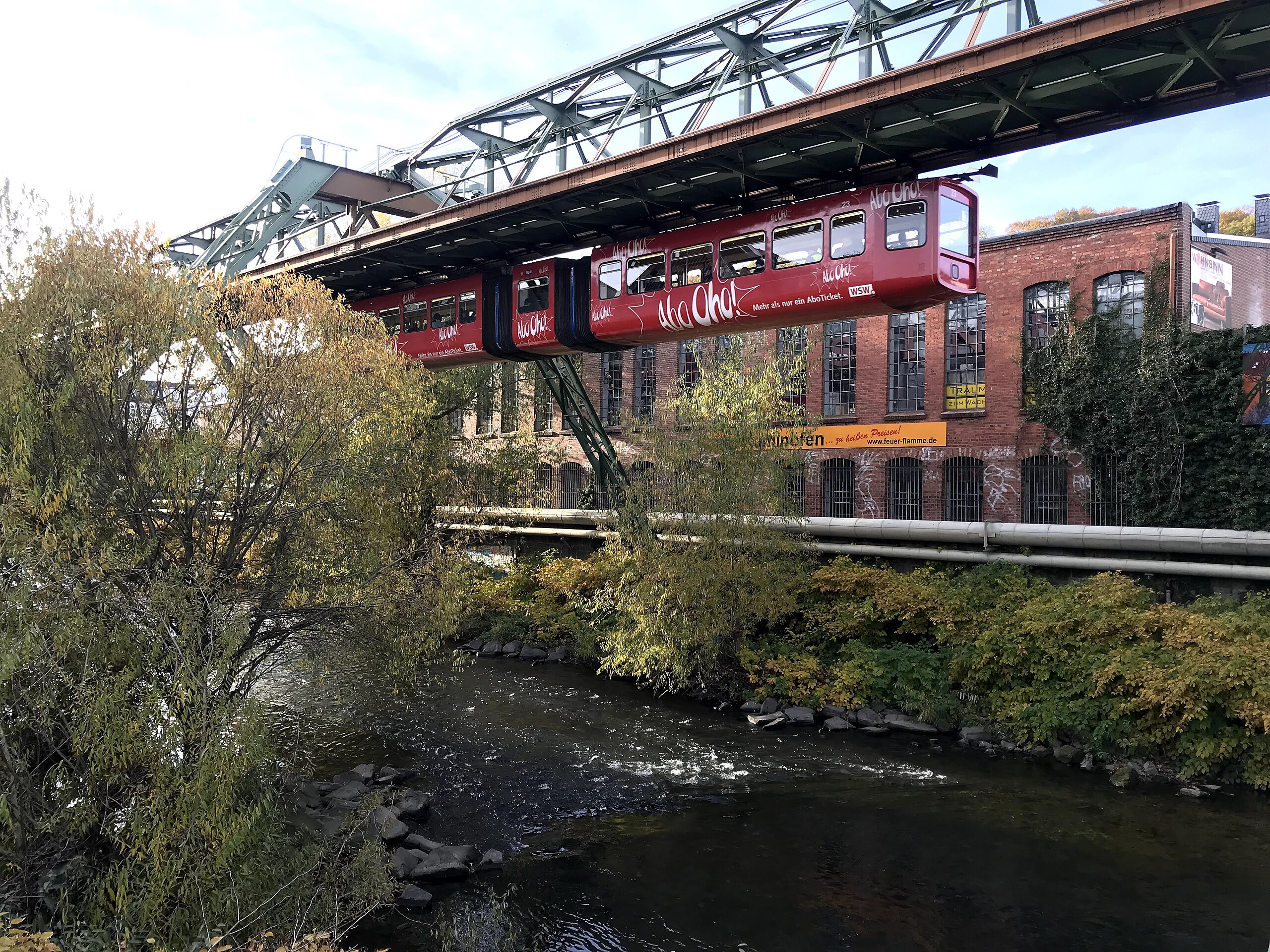 Вуппертальская подвесная железная дорога проходит по диаметральной линии от Вупперталя-Фовинкеля через Эльберфельд-Вест, Эльберфельд и Бармен до Вупперталя-Обербармена; она пересекает город с юго-запада на северо-восток. Благодаря расположению Вупперталя в долине он напоминает линейный город, а подвесная железная дорога соединяет большинство самых популярных направлений города.