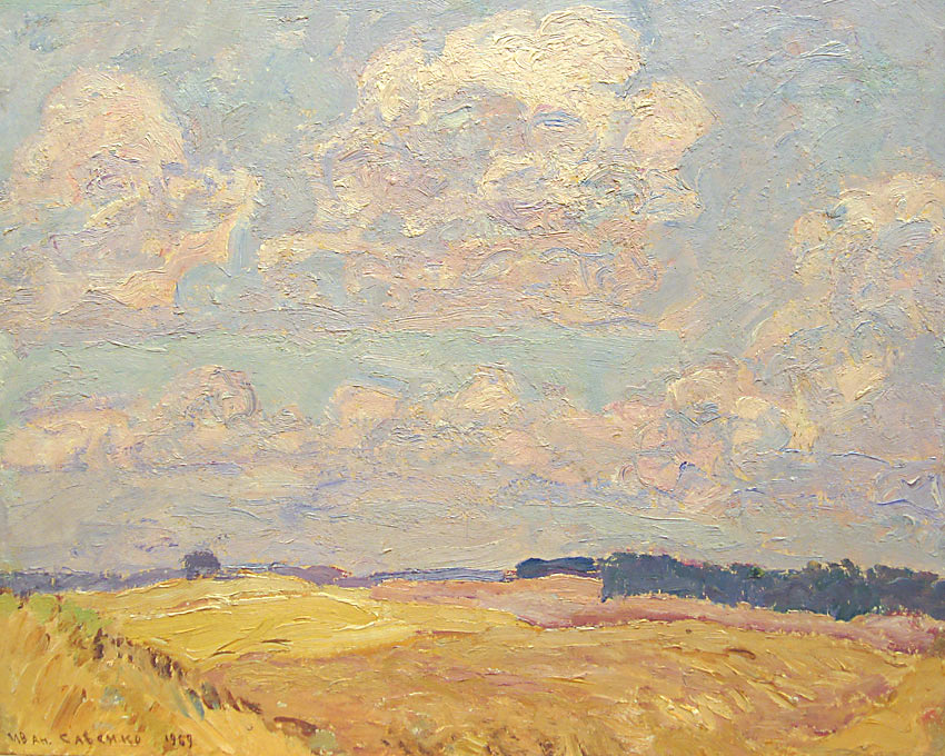 В экспозиции были представлены все основные жанры, в которых работал И. Савенко: тематическая картина, пейзаж, портрет.