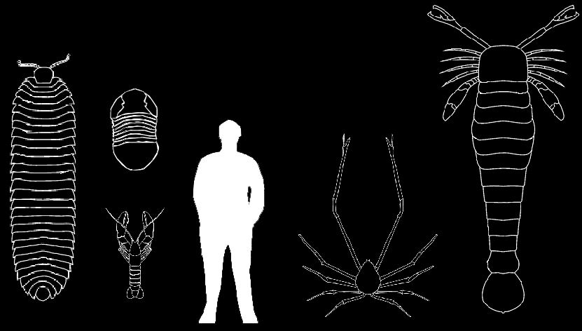- ↑ Anomalocaris saron, Anomalocaris canadensis, Isotelus rex, Uralichas hispanicus, Terataspis grandis, Megalograptus sp., Eoarthropleura hueberi, Eoarthropleura devonica, Arthropleura moyseyii, Arthropleura armata, Megarachne servinei, Stylonurus excelsior, Pterygotus buffaloensis, Jaekelopterus rhenaniae, Homarus americanus, Meganeura monyi, Arthrolycosa antiqua, Meganeuropsis permiana, Macrocheira kaempferi — источник