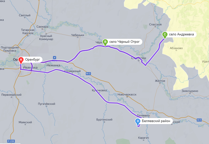 Маршрут «Горизонты открытий» проходит по территории Беляевского и Саракташского районов города Оренбурга. Протяжённость маршрута 620 км.