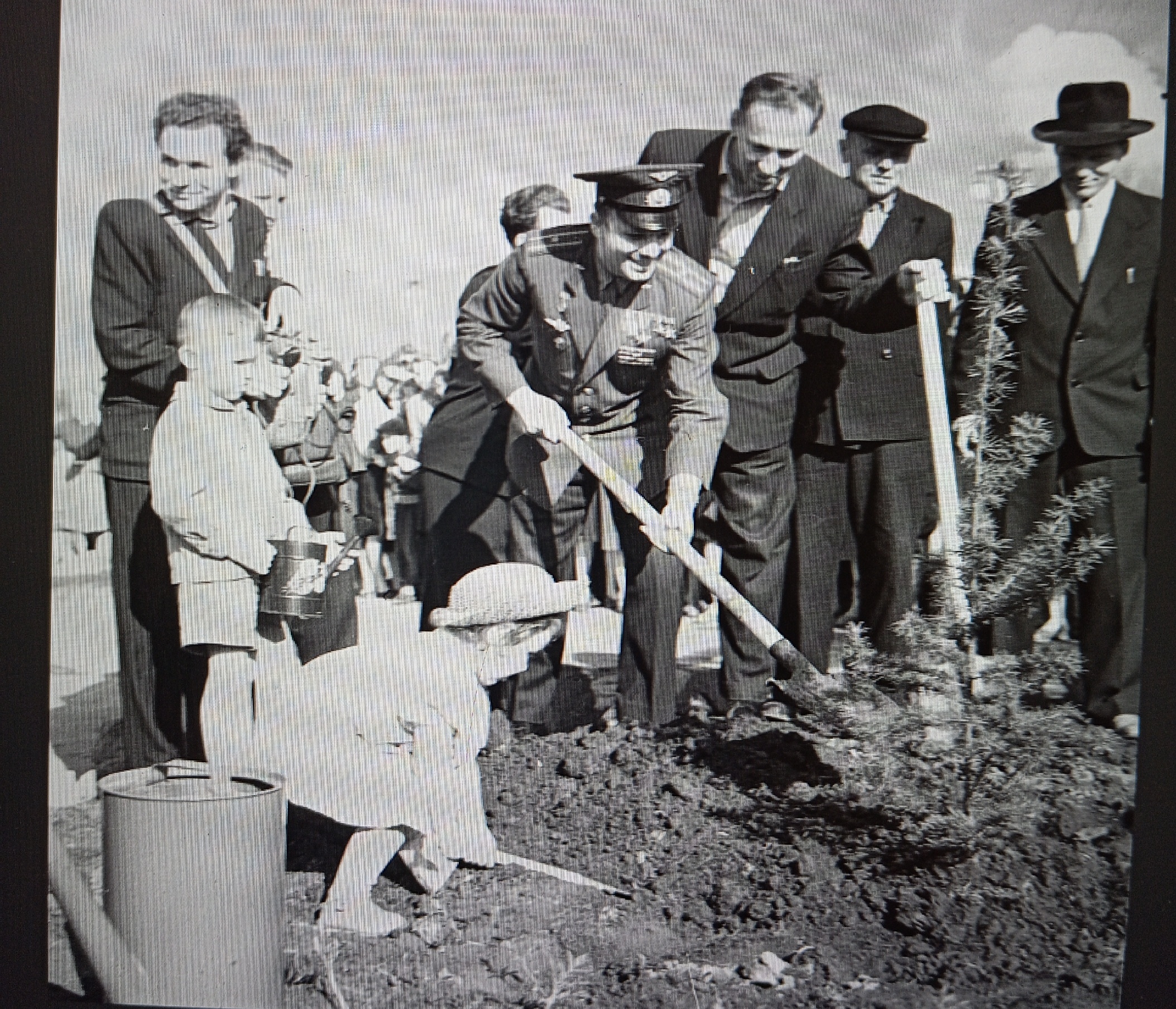 29 мая первому космонавту предложили посетить парк. Там он посадил даурскую лиственницу, которая до сих пор растёт в парке. Алевтина Михайловна Кормилицына, в ту пору научный сотрудник, и Иван Гаврилович Ганенко, заведующий дендрарием, после недолгих размышлений решили, что садить в парке будут лиственницу. Дерево быстро растёт, очень красивое, а главное, оно хорошо себя чувствует в низинах. А место в парке именно такое, затапливаемое[9].