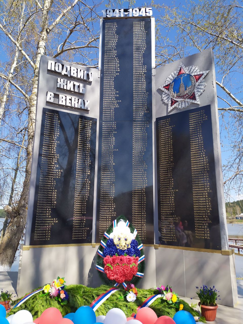 Мемориальный комплекс героям Великой Отечественной войны 1941—1945 года открыт в 1975 году. Инициаторы создания памятника — Савелий Иванович Ужегов (1914—1981), бывший фронтовик и Михаил Иванович Софьин (1924—1982), директор совхоза «Григорьевский». Мемориальный комплекс состоит из трёх железобетонных стел и напоминает по форме раскрытую книгу. Средняя стела составляет в высоту 4 метра. В её верхней части расположена табличка из нержавеющей стали с гравировкой «1941—1945». На полосках нержавеющей стали левой стелы выбиты слова «Подвигу жить в веках», на правой стеле расположен орден Отечественной войны. На нижних частях стел находится список воинов, ушедших на фронт из Григорьевского сельсовета[4].