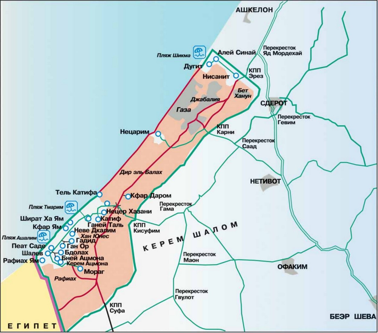 Поселения Гуш-Катиф находились на юго-западе Сектора Газа и были обнесены общим забором.
