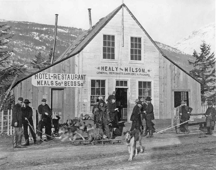 В 1884 году Джон Хейли вместе с Эдгаром Уилсоном открыл в Дайи факторию, а через два года к нему присоединился компаньон Джон Хейли (John Healy), которого обычно называли «капитан Хейли»[4][14][15]. Вплоть до 1896 года это было единственное деревянное здание в Дайи. Оно служило одновременно салуном, магазином и жильём. К нему был пристроен склад, а сзади разбит огород. Пристройка с другой стороны, возведенная в 1897 году, гордо именовалась «Отель-ресторан», где за 50 центов можно было поесть и ещё за 50 — переночевать. Хейли вместе с компаньоном Уилсоном обустраивали тропы к Чилкуту, не беря за это платы, а лишь для того, чтобы привлечь больше старателей в Дайи. Тлинкитам это не нравилось. Один из вождей — Lunáat — возмущался, что белые люди отнимают у его народа тропы[12].
