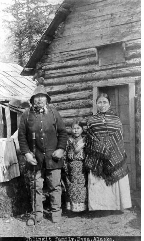 Индейцы-тлинкиты были высокоорганизованным, развитым и воинственным народом. Жилые и общественные здания часто строили из дерева, иногда жили в длинных деревянных бараках, покрытых торфом. Это был более сложный и прогрессивный тип постройки, чем у индейцев континентальной Аляски[5]. Тлинкиты были мастерами в выдолблении из стволов деревьев лодок, которые могли плавать по морю и по реке. Лодки для повседневного использования были длиной 3-5 метров. Более крупные каноэ, длиной до 17 метров, могли вмещать 50 человек и использовались в военных действиях. Известны также их тотемы, которые воздвигались для различных целей — религиозных и бытовых[6].