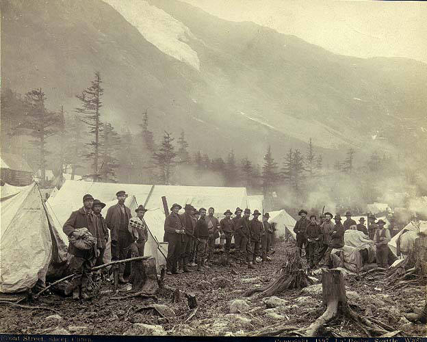 Летом 1897 года вспыхнула Клондайкская золотая лихорадка. Первые пароходы из Калифорнии прибыли в Дайи в конце июля[1]. За несколько дней Дайи превратилось в многотысячное поселение с хаотично разбросанными палатками и горами грузов. Для одних это была временная остановка на пути к Клондайку, для других, потерявших имущество, деньги или здоровье, — пристанище перед возвращением домой. Некоторые навсегда остались в Дайи.