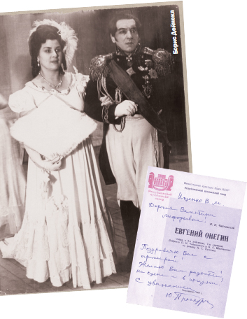 Б.Дейнека продолжал в этом театре и исполнительскую деятельность (среди партий — Гремин в опере «Евгений Онегин», где в партии Татьяны выступала певица тоже бывшая политическая осужденная из Воркутинского лагерного театра В. М. Ищенко; этой оперой в постановке приглашенного из Ленинграда профессора и композитора А. Киреева и открылся новый театр[11]).