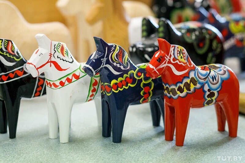 Швеция — рождественскую ель и интерьер в праздничные дни украшают деревянными лошадками «Дала». По традиции они должны быть красными, синими или белыми.