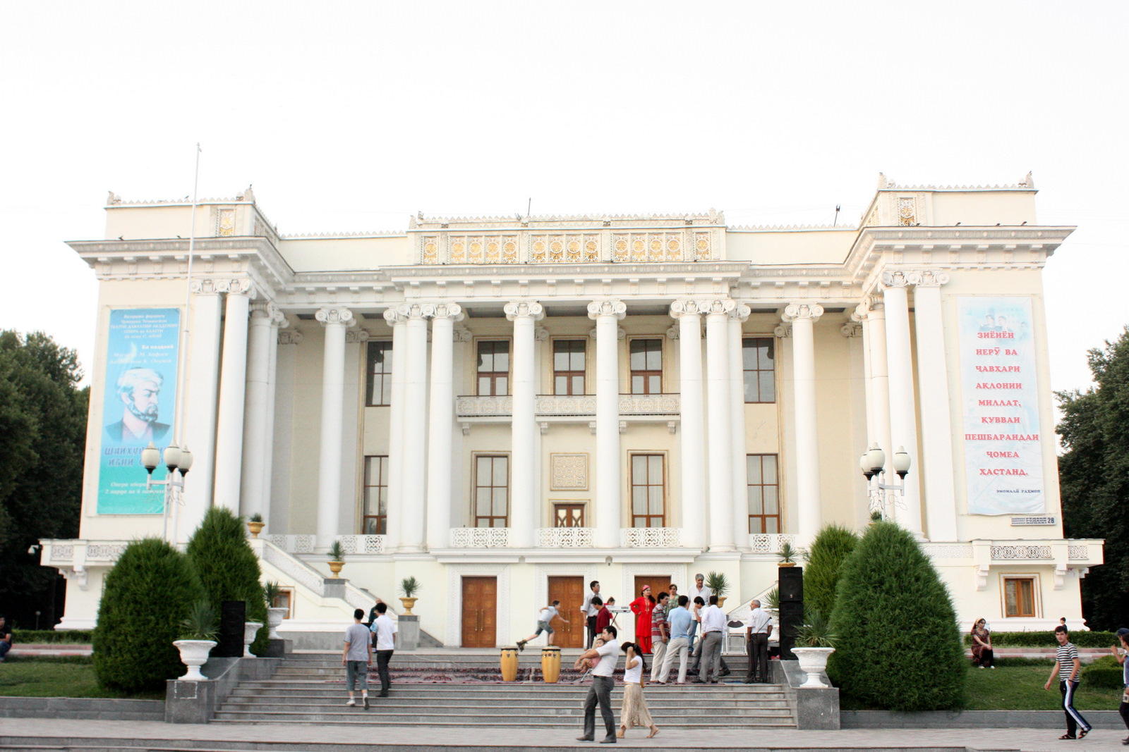 В 1928 году Дмитрий Билибин приехал в Самарканд (на тот момент столица Узбекской ССР) и поступил на работу инженером — архитектором в «Узбекпроект». В 1929 году он создал проект Узбекского государственного театра, который должен был строится в Самарканде и его проект на конкурсе занял первое место. Однако вскоре столица республики переносится в Ташкент и проект остаётся нереализованным. В 1931 году проектом театра заинтересовалось правительство Таджикской ССР, после необходимых согласований проект был передан в Таджикистан, а Билибин был назначен главным архитектором Наркомпроса Таджикской ССР[1]. Одновременно он становится руководителем архитектурно — планировочной мастерской в г. Ленинграде (Ленпроект) по разработке строительства в Сталинабаде (Душанбе) театра оперы и балета, педагогического института и других архитектурных объектов[2].