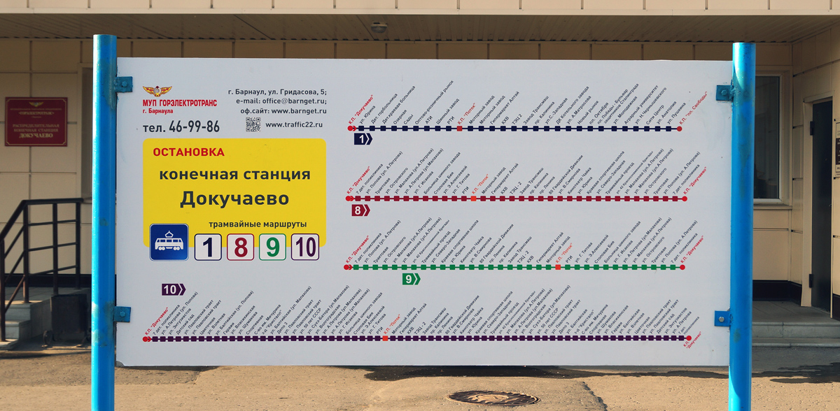 «Докучаево» — конечная станция Барнаульского трамвая. Введено в эксплуатацию: 7 сентября 1972 года.
