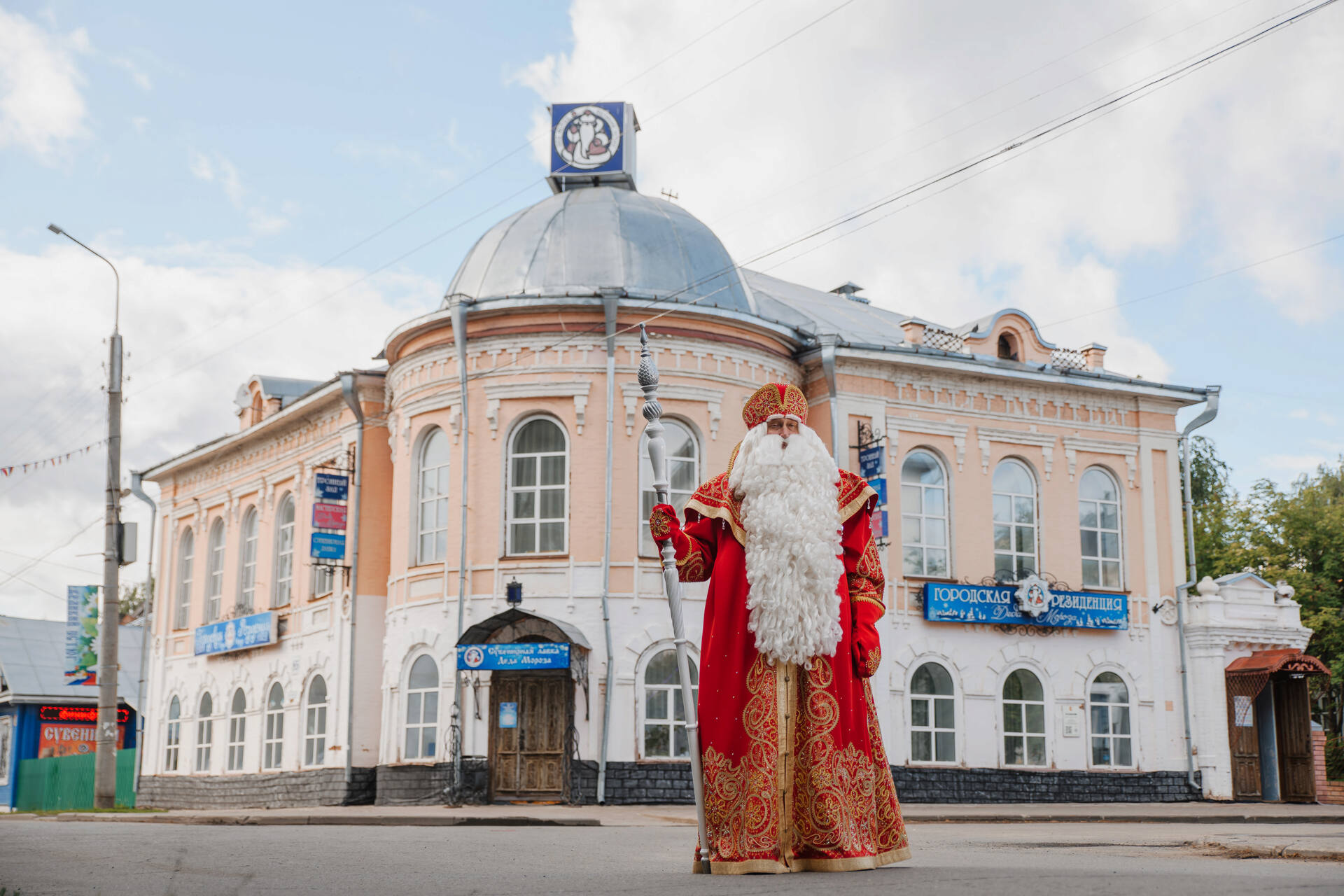 Городская резиденция Деда Мороза расположена в центре Великого Устюга по адресу Советский проспект, 85, в особняке XIX века, принадлежавшем местному купцу Петру Красильникову. В этом здании Дед Мороз принимал посетителей до появления Вотчины в 1999 году. В городской резиденции три зала — волшебный, тронный и мастерская. Во время экскурсии посетителям рассказывают, как складывались традиции празднования Нового года, предлагают сделать сувенир на память, сфотографироваться в новогоднем костюме и загадать желание, сев на трон Деда Мороза, но перед этим нужно записать свои хорошие поступки за год в «Книгу добрых дел». В этом же здании находится музей поздравительной открытки и большая сувенирная лавка[4]. В соседнем здании расположилась почта Деда Мороза, куда доставляют все адресованные волшебнику письма.