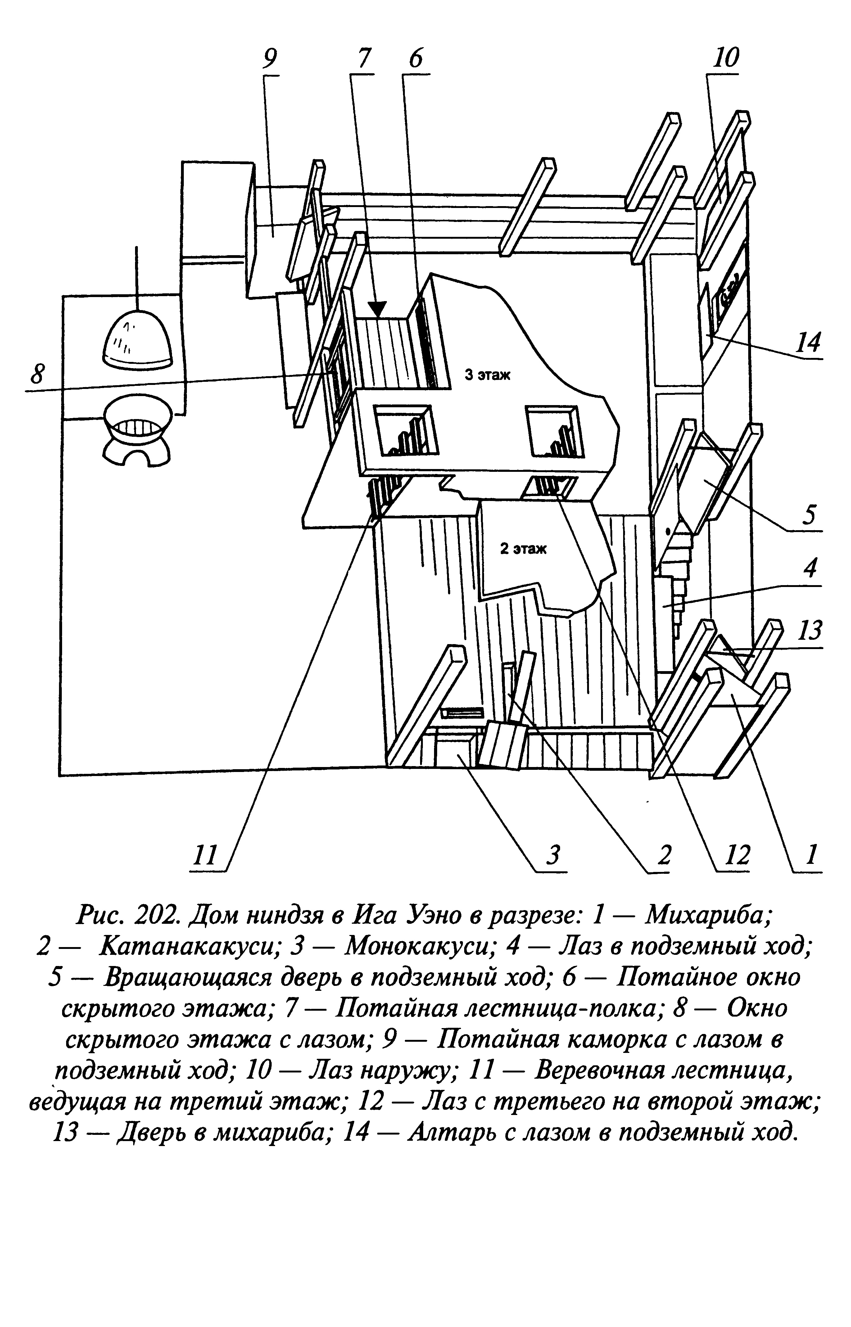 В главной комнате помимо потайной дверцы в первый подземный ход существовала еще одна потайная дверь в тайную каморку, в полу которой находился лаз во второй подземный ход.