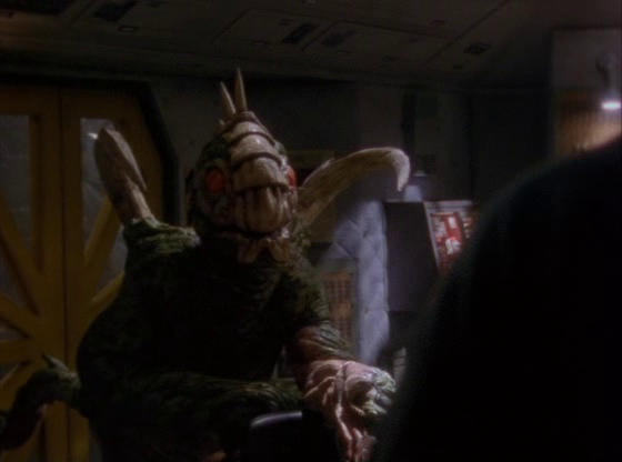 Когда третий астронавт, Эд Беркли, ремонтировавший проводку, возвращается обратно, он застаёт в каюте одного только Алана Уэллса, который сообщает, что Пит ушел спать. Но Эд успевает заметить, что у Уэллса что-то не так с рукой, и требует, чтобы тот закатал рукава. В ответ Уэллс на его глазах превращается в рептилообразное чудовище, и пытается схватить Эда за руку, чтобы заразить и его. Но Эд успевает отскочить назад, после чего ему удаётся при помощи огнетушителя оглушить «ящера», загнать его в шлюз и закрыть за ним дверь.