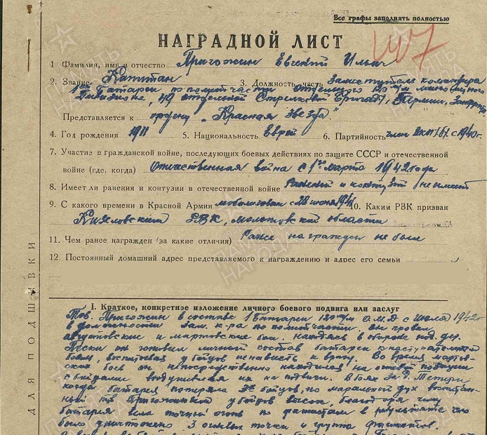 - ↑ Память народа: Документ о награде: Пригожин Евгений Ильич