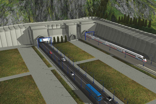 Первый большой туннель железной дороги был пройден техникой к 28 мая 2010 года. Длина составила 2330 метров, сооружение началось в июле 2009 года, завершено через год после официального начала стройки.