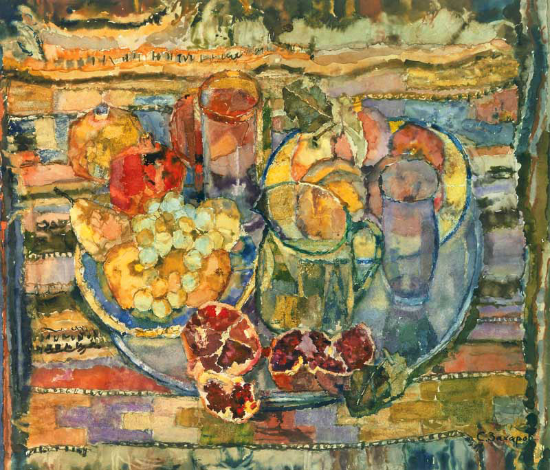 - Натюрморт с гранатами и дыней (картина Сергея Захарова, 1958)