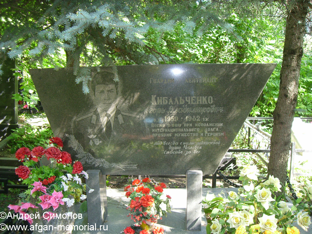- Кибальченко Игорь Владимирович[недоступная ссылка (Март 2020)] // Книга памяти о советских воинах, погибших в Афганистане: В 2-х т. Т. 1: А—Л / МО РФ гл. организац. мобилизац. упр. Генер. штаба; ред. комис.: В. И. Бологов. — М.: Воениздат, 1995. — 719 с. — C. 534.