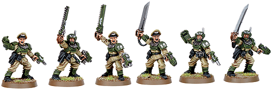 Строевых офицеров набирают с тех же миров, что и людей под их командованием. До вербовки в Гвардию эти люди скорее всего занимали аналогичные посты в Силах Планетарной Обороны, в некоторых случаях — это бывшие главари банд. Гвардейцы обычно преданны полковнику и другим офицерам своего полка, ведь они все родились на одной планете. Строевым офицерам предписано не разбрасываться жизнями людей, находящихся под их командованием, а те кто без нужды жертвует жизнями своих подчиненных скорее всего закончат свои дни в одном из Штрафных Легионов.