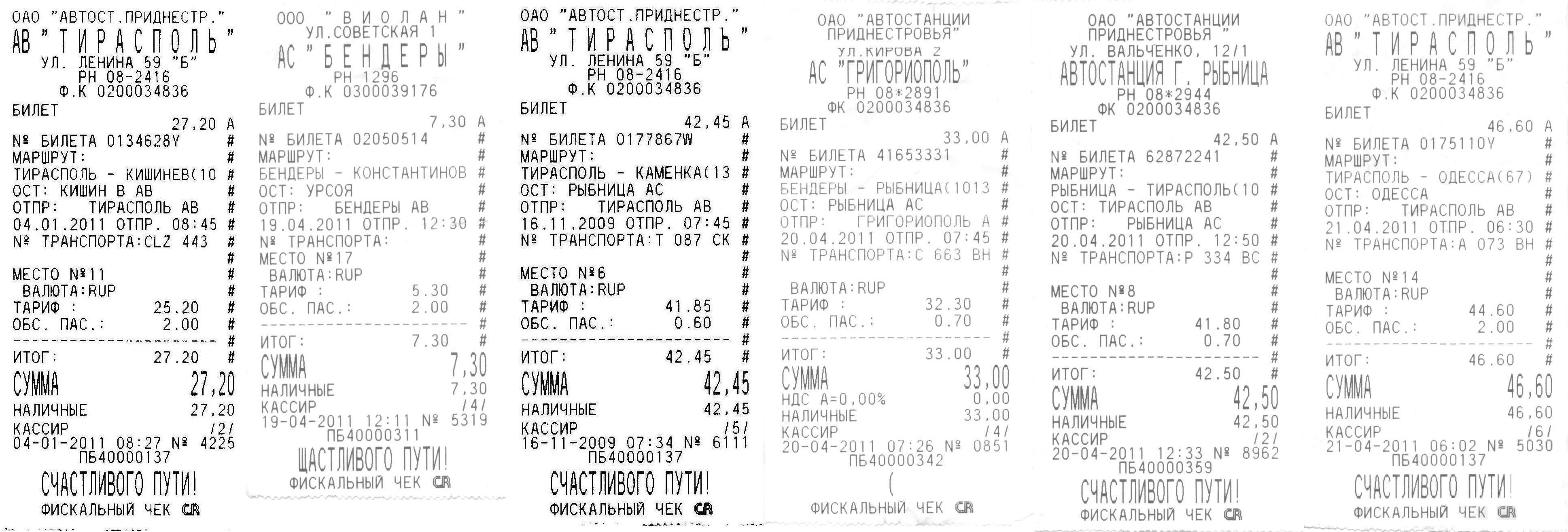 - г.Тирасполь, с. Парканы, с. Терновка, с.Ближний Хутор