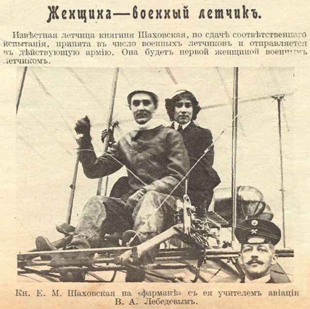 Начиная с появления в России военной авиации, ещё в период Российской империи, женщины получали дипломы авиаторов, принимали участие в боевых действиях. Первой российской женщиной-военным лётчиком стала княгиня Евгения Шаховская[49].