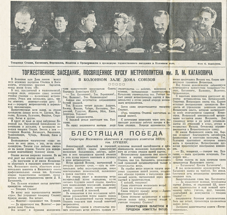 — Да здравствует великий Сталин! Да здравствует его ближайший соратник, любимый руководитель московских большевиков тов. Л. М. Каганович! — тонет в аплодисментах, которые с новой силой возобновляются и переходят в бурную продолжительную овацию при предложении послать приветствия товарищам Сталину и Кагановичу.