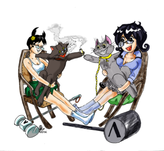 - Банхаммер-тян и Уныл-тян.png 599 × 370; 291 Кб