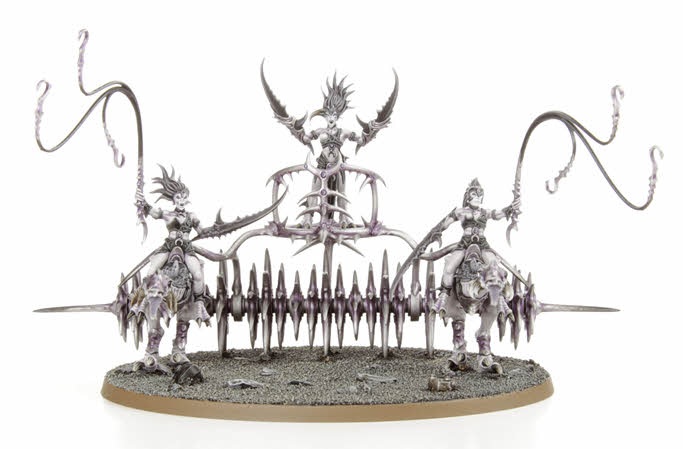 Возвышенные Колесницы (Exalted Chariots) разработаны, чтобы сокрушать многочисленных врагов. Эти колесницы движутся с такой скоростью и силой, что все, возникающие на их пути, остаются за ними в виде кровавого тумана. Лезвия колесницы способны захватить душу жертвы, в то время как тело разрывается на кусочки, и затянуть остатки в бурю стальных лезвий.