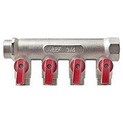 - коллектор с отсекающими кранами — представляет из себя полый цилиндр в строенными в каждый выход шаровыми кранами. Позволяет открывать/закрывать отдельные направления потока.