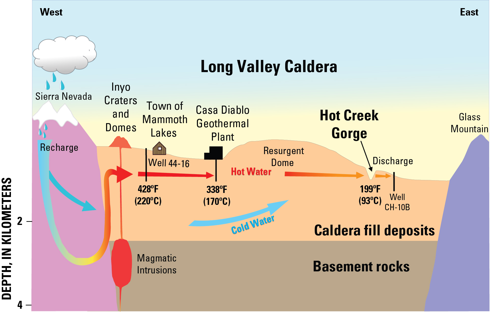 Молекулярные формы, как силикаты, вода, газы на больших глубинах «не живут», будучи неустойчивыми при том давлении, которое там имеет место.[86][95][88][96][85] С большой степенью достоверности можно сказать, что механизм нагрева воды о породы не подходит для объяснения высокой температуры воды гейзеров. Тем более, что нагревать надо в динамике и выше флюидного состояния (сверхкритический флюид воды — СКФН2О). Допустим, что с поверхности на глубину в породы по трещинам и слоям холодная вода пойдёт самотёком под действием сил гравитации. Но погружаться по горячим породам ей удастся не глубже, чем до своего первого фазового перехода. Однако далее пар ринется вверх, возникнет зона просушки — барьер для проникновения холодных вод, и движение станет. Статичный объем холодной воды среди горячих пород вне сомнения нагреется через какое-то достаточно длительное время, если его не тревожить. Но необходимым условием эффективности теплового питания текущих потоков является высокая скорость теплопередачи в месте теплообмена, большая площадь области теплообмена и «правильная конструкция» из вмещающих пород для организации потока. Реальные породы нужными для этого свойствами не обладают.[84][97][85]