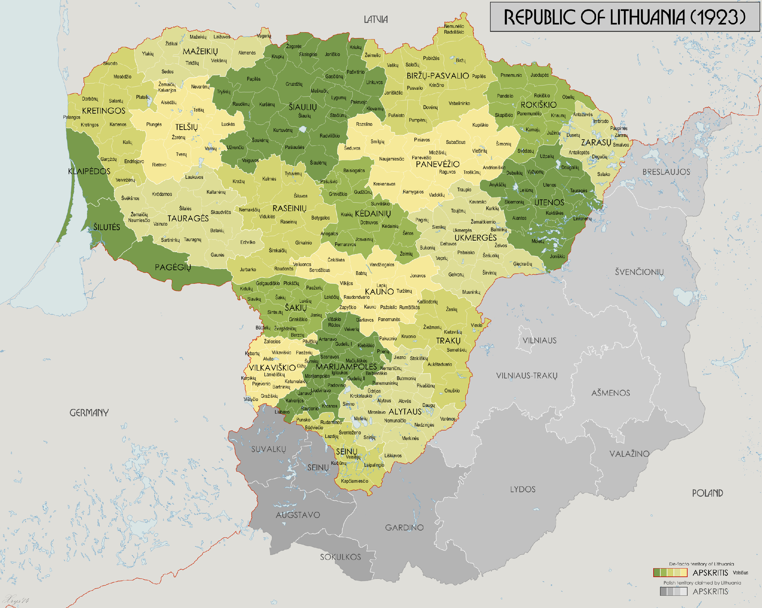 До сентября 1939 года Виленский край находился в составе Польши как Виленское воеводство. В 1923 году к Литве отошёл после захвата немецкий Мемель (Клайпеда). С 1919 по 1939 год временной столицей Литвы был Каунас.