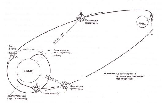 В зависимости от точности выведения на траекторию облета Луны предусматривались коррекции движения корабля. После облета Луны следовало выполнить еще две коррекции движения для более точного входа в атмосферу Земли. После проведения последней коррекции корабль ориентировался, спускаемый аппарат отделялся от приборно-агрегатного отсека, совершал два погружения в атмосферу и приземлялся или приводнялся в заданном районе на парашюте с применением двигателей мягкой посадки.