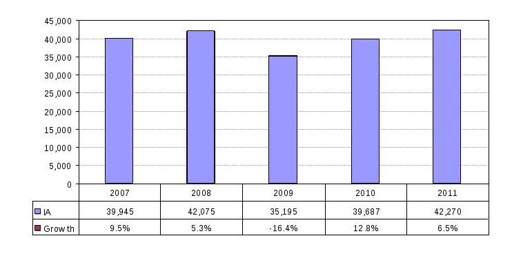 В 2011 году ВОИС получила рекордное число заявок (42 270) в соответствии с Мадридской системой. По сравнению с 2010 г. прирост составил 6,5 %.