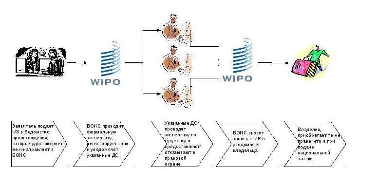 - Международная заявка подается в ведомство страны происхождения, после чего она направляется данным ведомством в Международное бюро ВОИС.