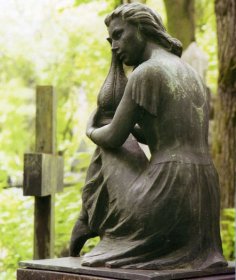 На ее могиле памятник, изображающий ее в партии Лолы.