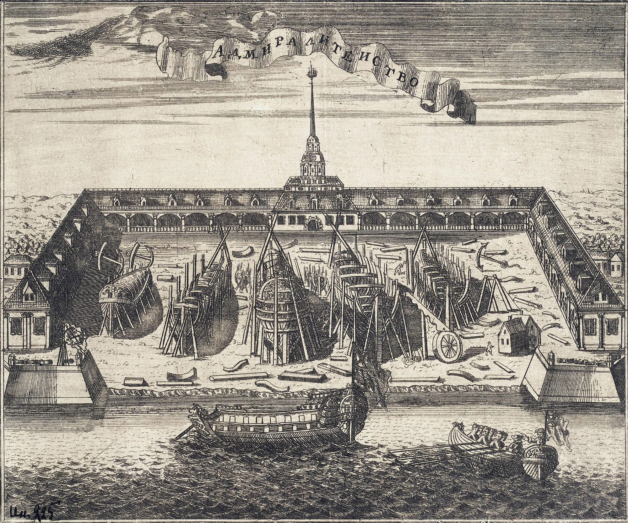 В 1709 году напротив ворот здания Главного адмиралтейства (где ныне расположен фонтан Александровского сада), была построена чертёжная при Главном адмиралтействе. Вскоре её приспособили под временную церковь и в том же году, внутри адмиралтейства, была построена новая чертёжная, названная «модельной каморой» (от голландского «model-kammer» — комната моделей, кладовая образцов), куда и были перенесены из первого Зимнего дома (построен в 1708 году) Петра чертежи и модели. В 1714 году по чертежам Петра I была построена новая модель-камера. Обе модель-камеры строил корабельный мастер Федосей Скляев. Заведывание модель-камерою возлагалось преимущественно на корабельных подмастерьев. Первым заведующим модель-камеры с 1710 года был Василий Тихомиров — ученик английского судостроителя на русской службе, корабельного мастера Осипа Ная. В модель-камере Петра I хранились преимущественно чертежи и технические принадлежности: циркули, коловороты, напарья (инструмент плотника), липовые доски для черчения шпангоутов и т. д[3].