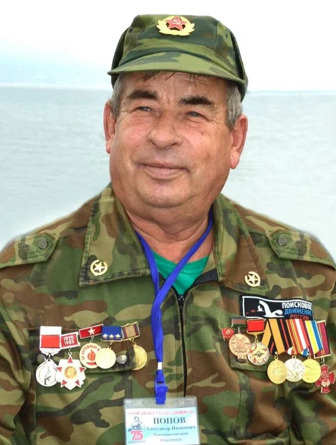 - ↑ 7,0 7,1 7,2 7,3 7,4 В. Шкарупилый 70 лет со дня рождения А. И. Попова. Муниципальное бюджетное учреждение культуры Васюринского сельского поселения «Музей боевой и трудовой славы имени П. Т. Василенко», официальный сайт (23.08.2024). Проверено 26 апреля 2025.