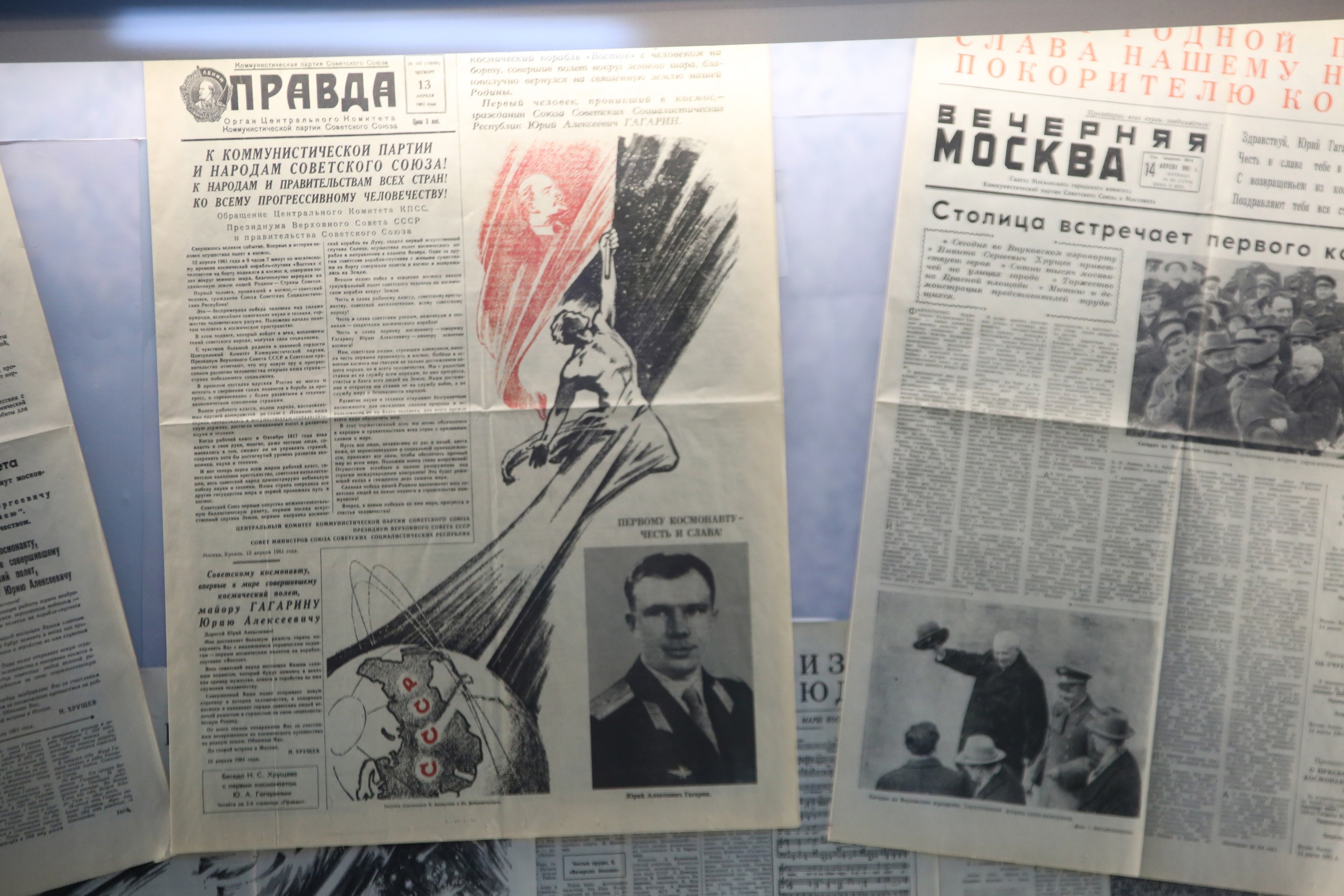 Отдел истории первого полёта был создан в гагаринском музее в 1989 году, первая выставка на основе наработок этого отдела была проведена в 1991 году, она прошла на территории Благовещенского собора[7].