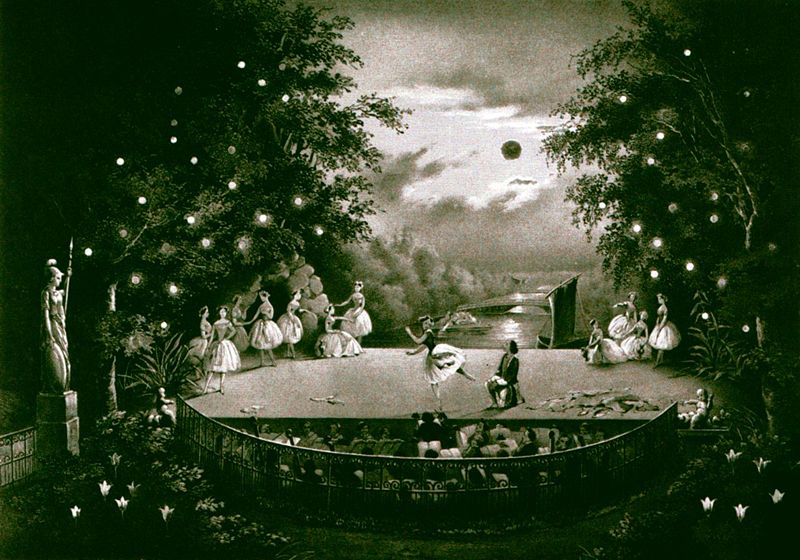 Жюль Перро изначально ставил этот балет для балерины Фанни Черрито, которая исполняла главную партию. И несколько танцев поставила она сама, в том числе дивертисмент Pas de six — танец шестерых, а «Танец с тенью», созданный ею для этого балета, приобрел мировую известность[2][10]. Тень создавалась определенным освещением. Сам по себе танец с тенью не являлся новым явлением в балете — он был придуман и использовался к этому времени уже давно: известно использование танца с тенью в балете Ш. Дидло «Кавказский пленник, или Тень невесты» (1823 г.), Ф.Тальони в его балетах «Тень» на разную музыку (в 1836 г. в Мадриде, в 1839 — в Лондоне), в балете «Жизель»[11]. Но в тех балетах он носил особый торжественно трагический оттенок и проступал тенью-душой погибшей героини; впервые тень стала элементом игры, когда танцовщица вела как бы двойную партию — собственно своего танца и отбрасываемой тени от него[11].