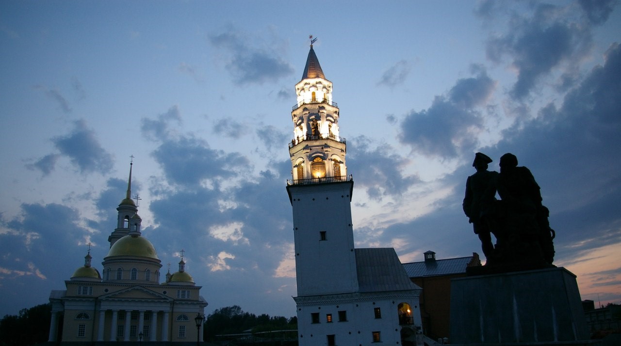 Наклонная башня Демидовых располагается по адресу: сквер Демидовых, д. 3А.
